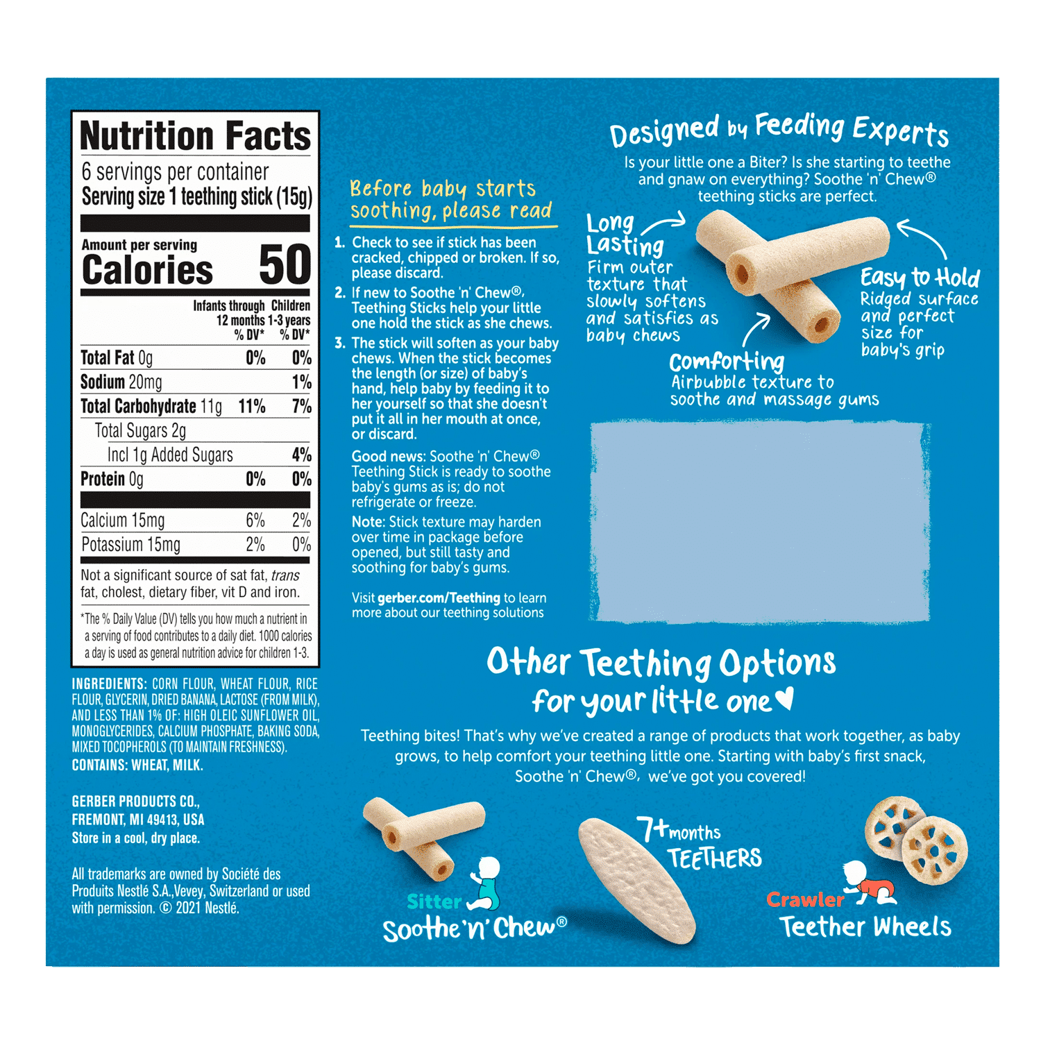 Gerber Snacks for Baby Soothe n Chew Teething Sticks Banana, 0.53 oz Box (6 Pack)