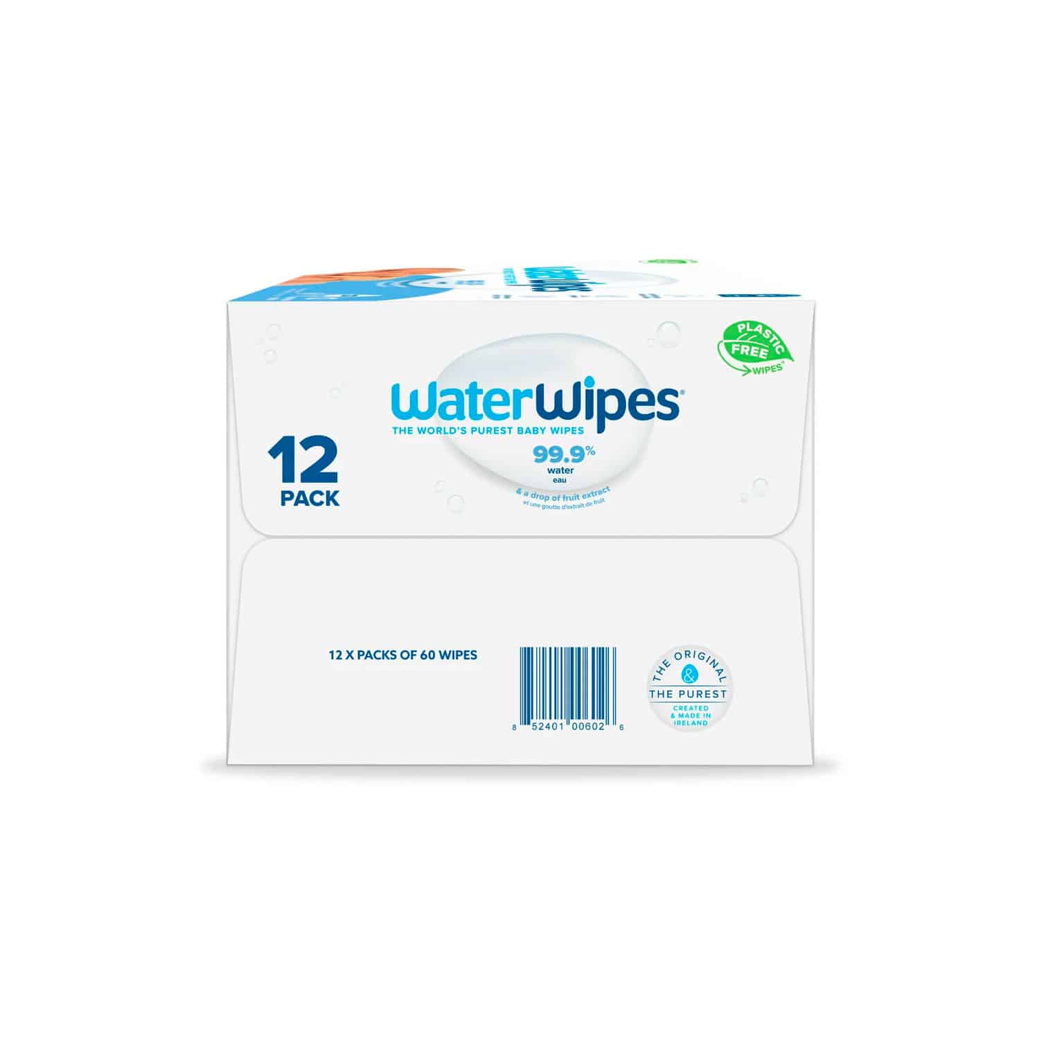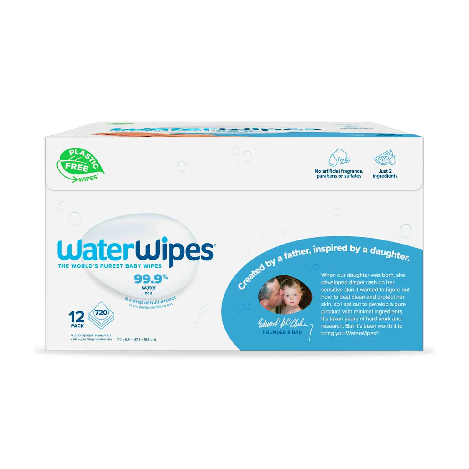 WaterWipes Plastic-Free Original Baby Wipes, 99.9% Water Based Wipes, Unscented & Hypoallergenic for Sensitive Skin, 720 Count (12 Packs)